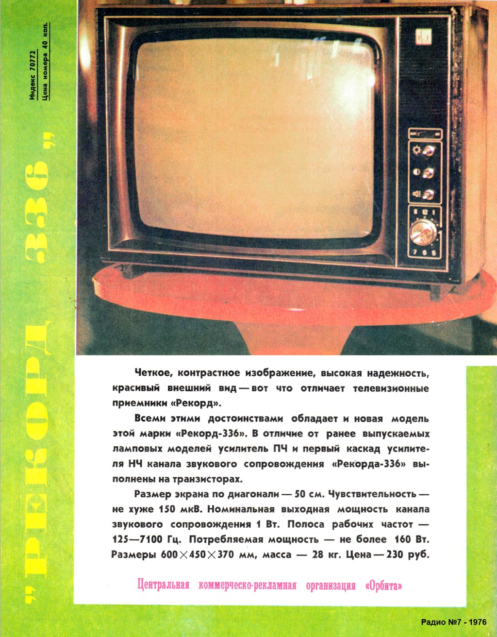 и телевизор ''Рекорд-336''. В отличие от ранее выпускаемых ламповых телевизоров