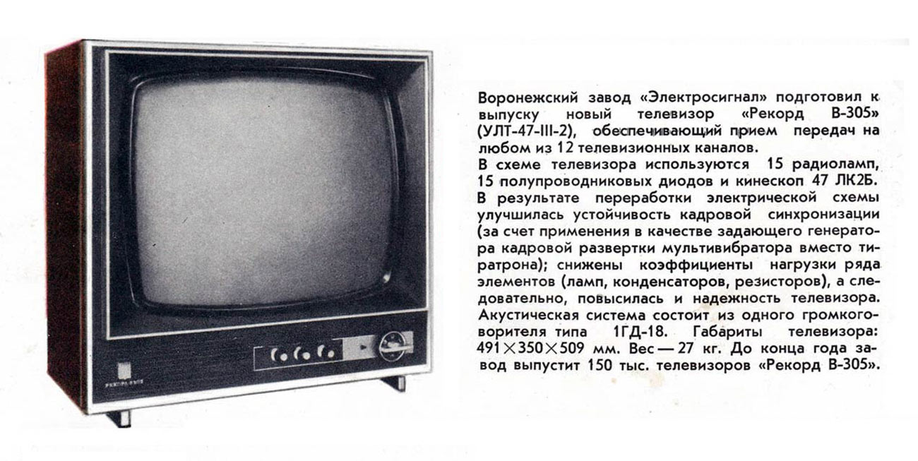 ч/б изображения "Рекорд В-305" с 1971 года выпускал Воронежский завод "Электросигнал".