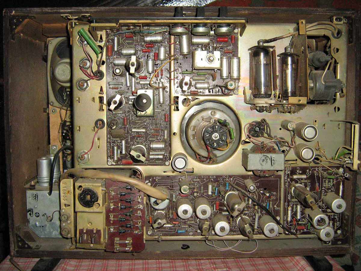 Шасси, на котором расположены платы из фольгированного гетинакса и установлены