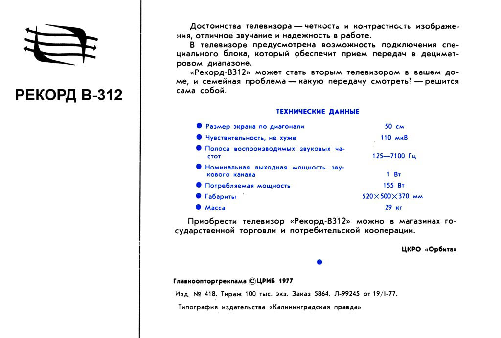 году снижена до 200 рублей. Телевизор в своё время был массовым.