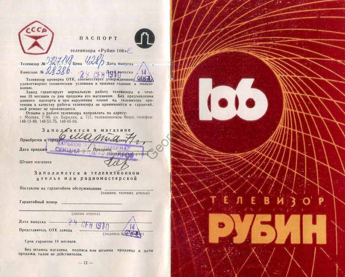 ''Рубин-106''. Цена телевизора ''Рубин-106'' - 420 рублей, а ''Рубин-107''