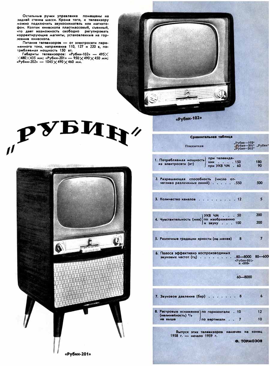 Михайлович. Выпуск телевизора ''Рубин-201'' был начат в октябре 1958 года,