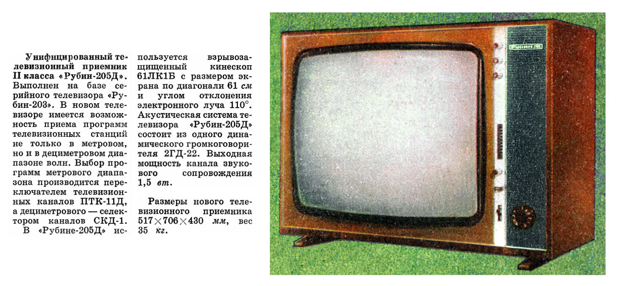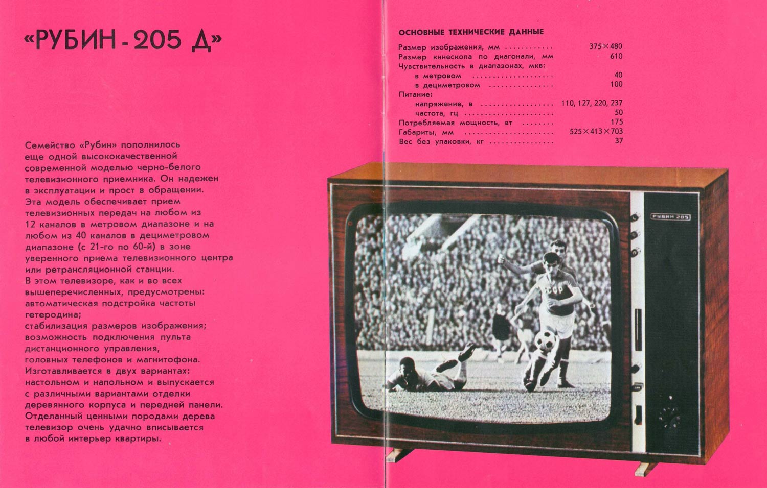 приёмник чёрно-белого изображения "Рубин-205/Д" с 1971 года выпускал Московский