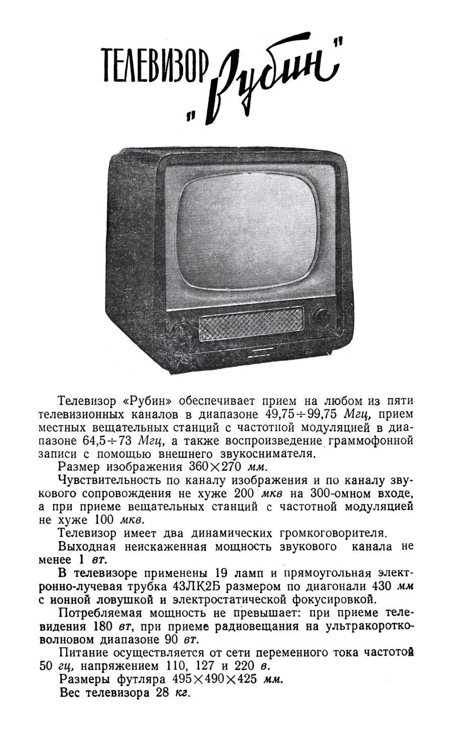 приёмник ч/б изображения "Рубин" с 1956 года выпускал Московский телевизионный