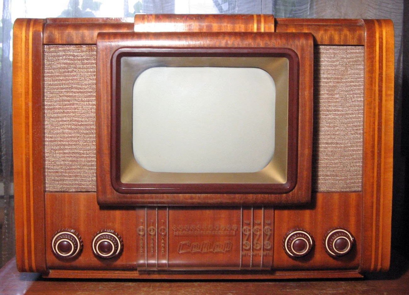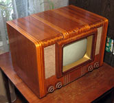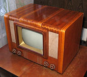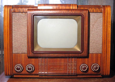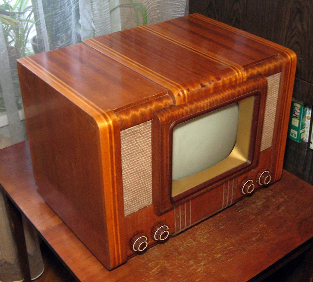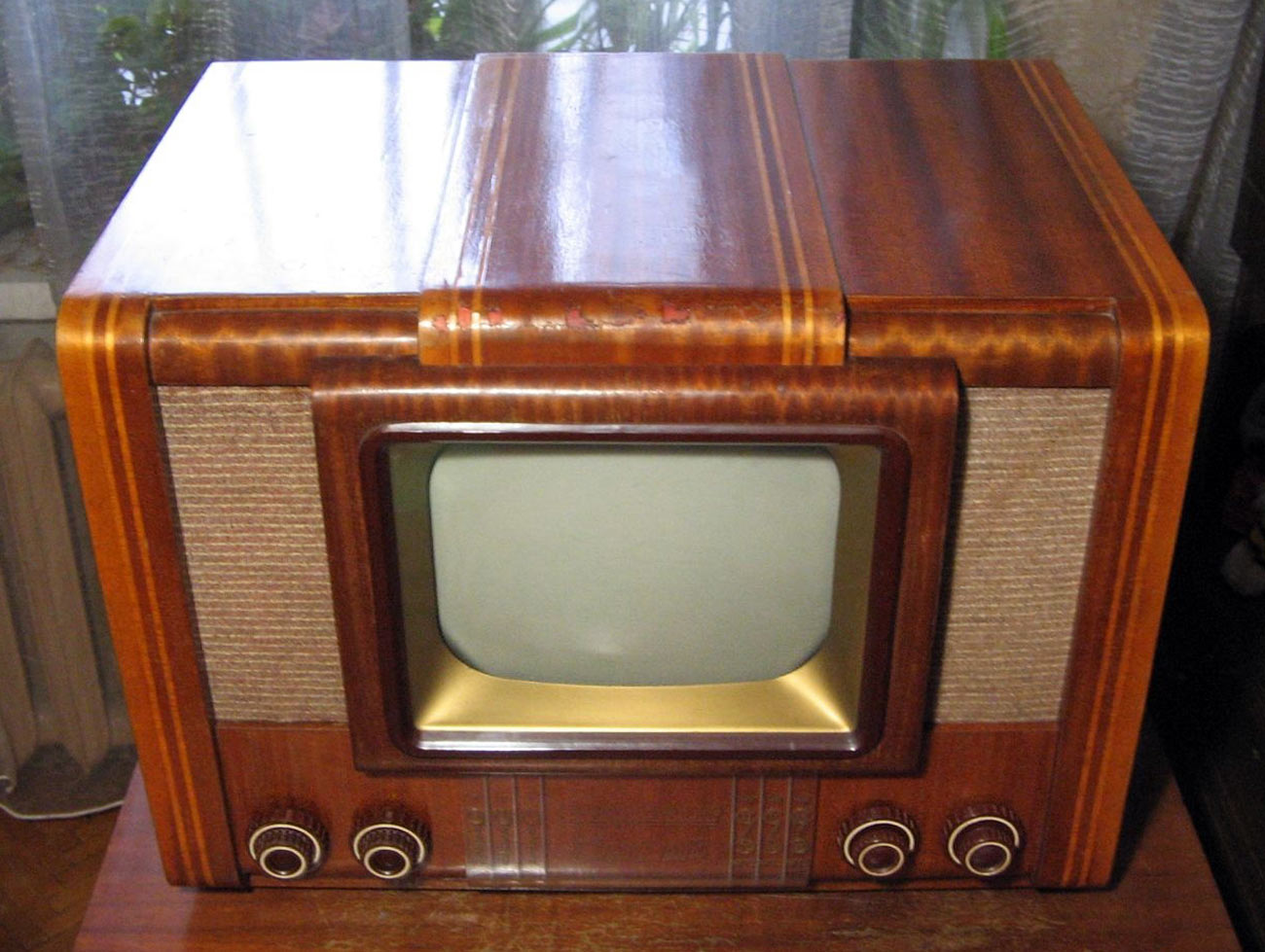 шасси из металла, помещённое в ящик из полированного дерева. Габариты телевизора