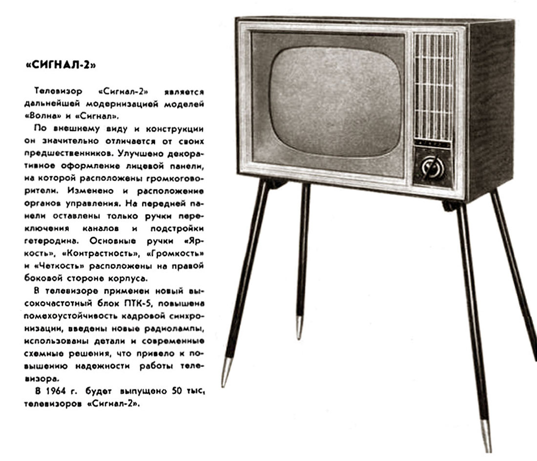 приёмник чёрно-белого изображения "Сигнал-2" с октября 1964 года выпускал