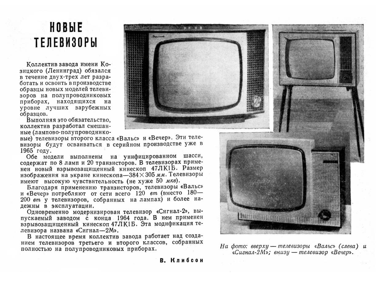 "Ленинградский завод имени Козицкого". Телевизор ''Сигнал-2'' (ЗК-45) создан