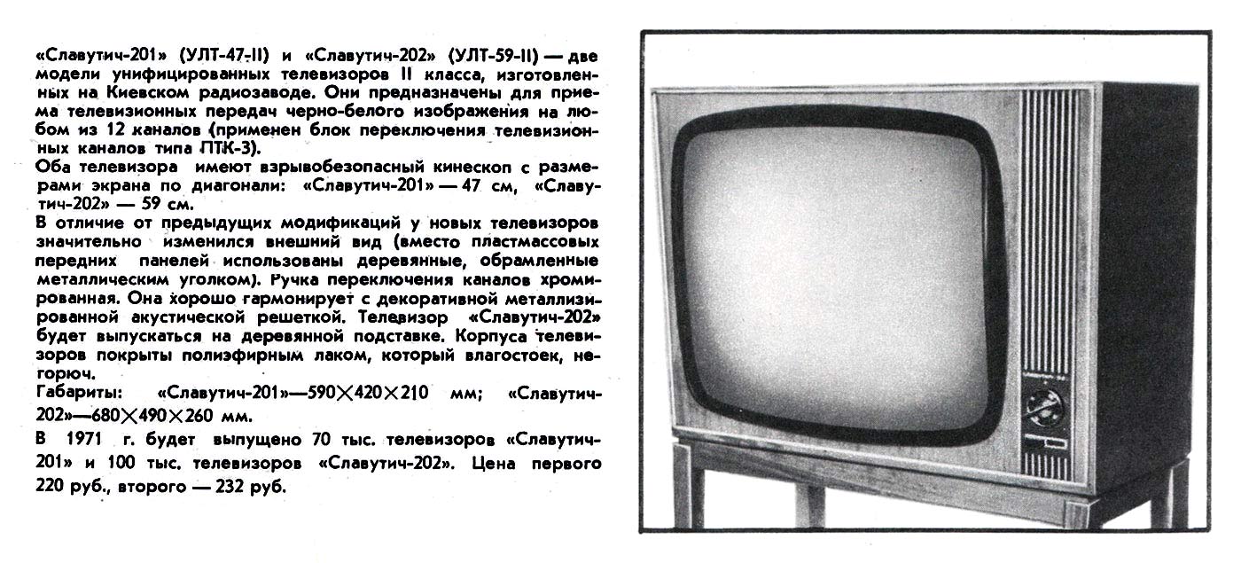 года завод начал выпуск телевизоров "Славутич-201" (УЛТ-47-II-2) и "Славутич-202"