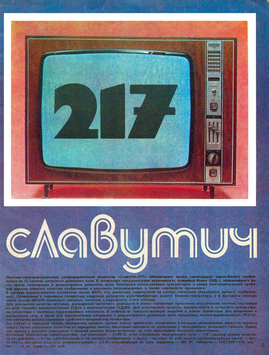 и внешнему оформлению не отличающиеся от телевизора "Славутич-217".