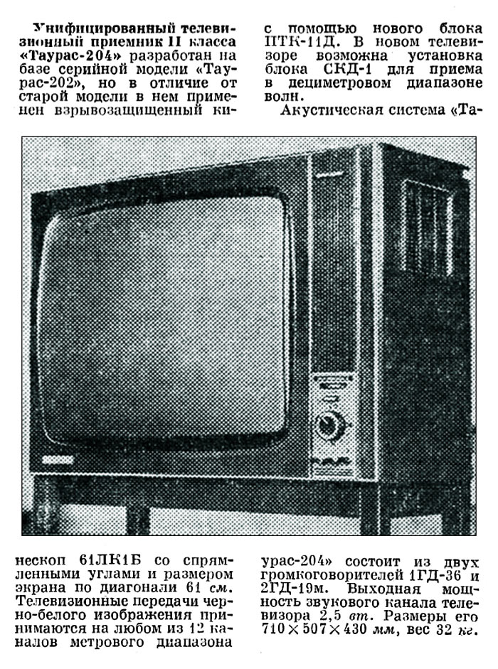 завод. Унифицированный ч/б телевизор 2-го класса ''Таурас-204'' разработан