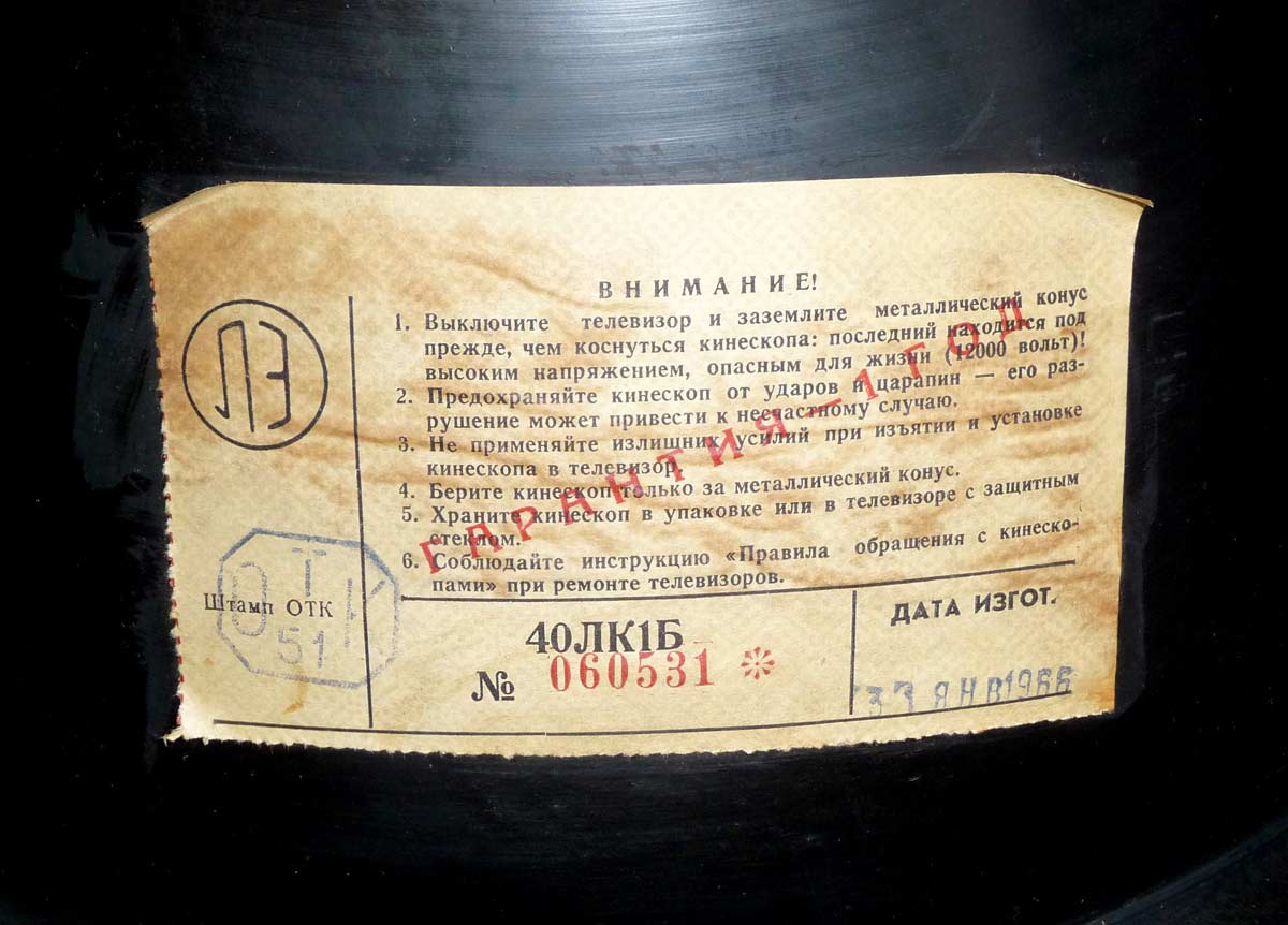 44 кг. На передней панели под защитным стеклом расположен кинескоп 40ЛК1Б.