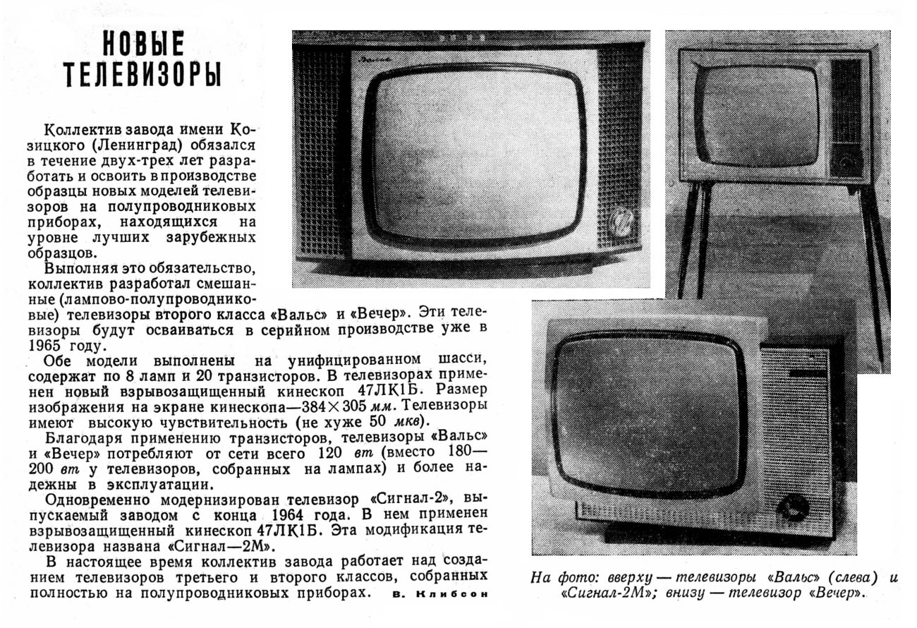 с 1965 года освоен выпуск комбинированных телевизоров ''Вальс'' и "Вечер".