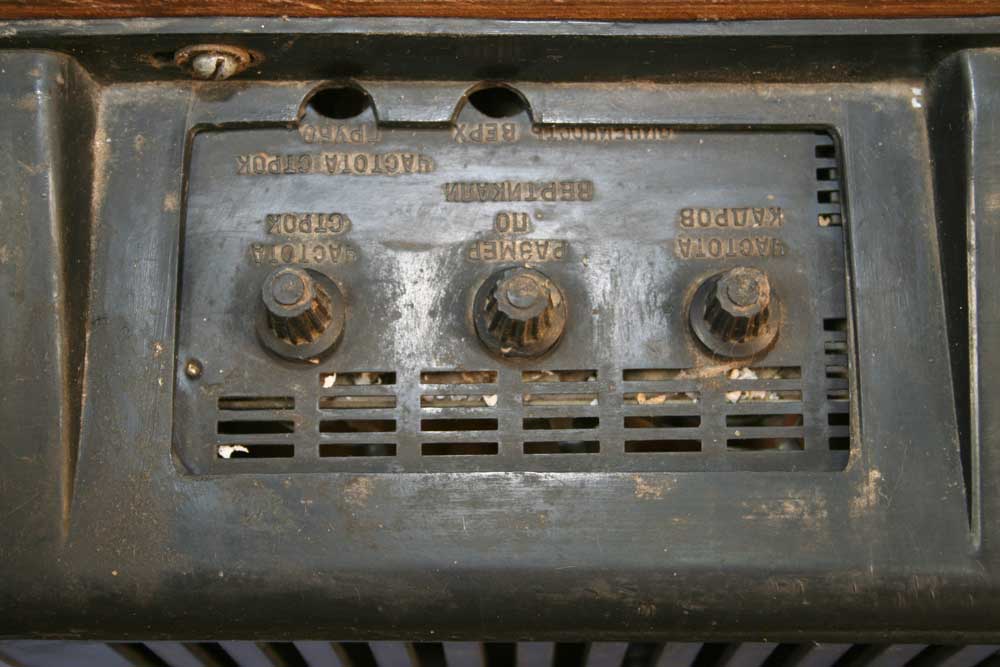 ручки настройки гетеродина, ПТК, селектора ДМВ, громкости, выключателя сети,