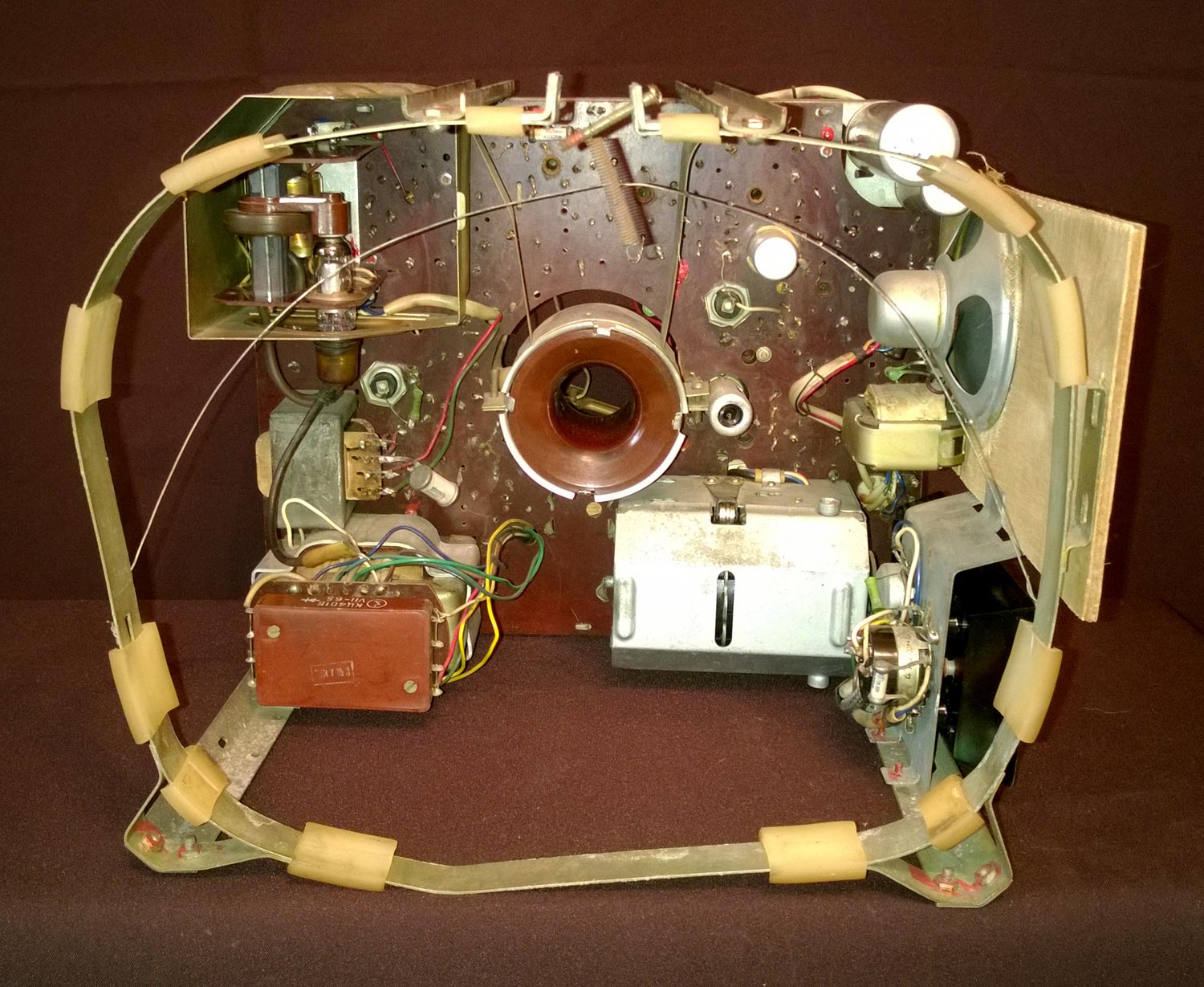 и положение ПТК, выходного трансформатора звука, планки с сетевыми предохранителями.