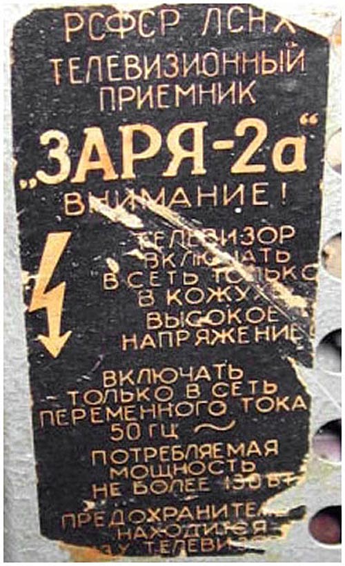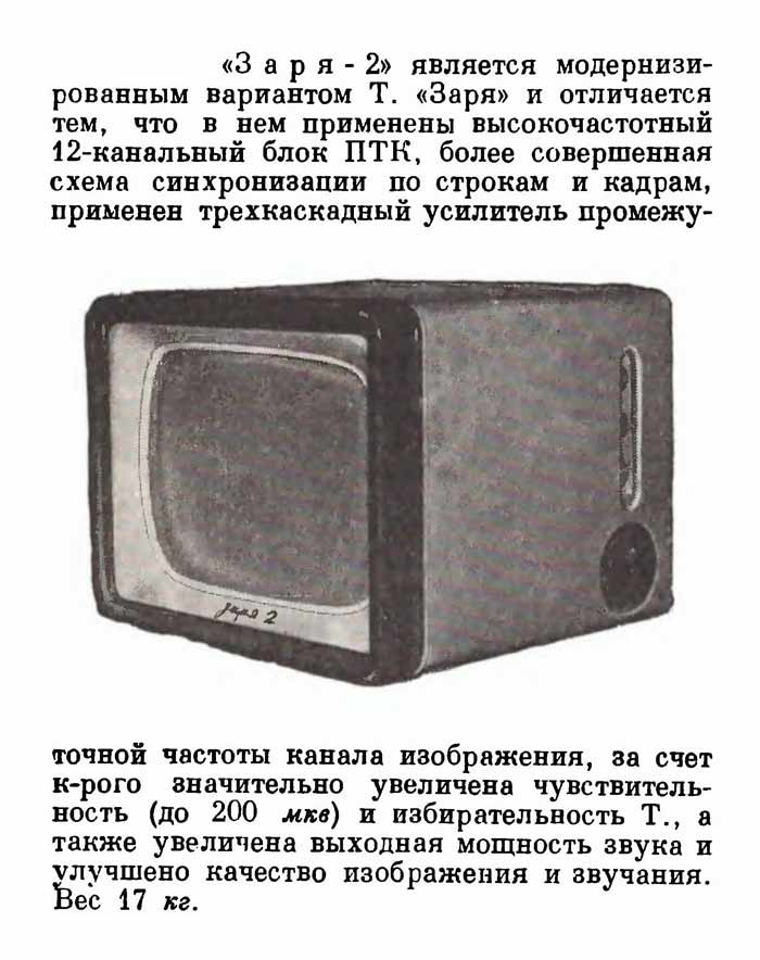 Описание телевизора "Заря-2" в справочнике