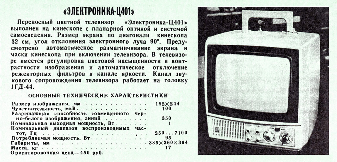 приёмник цветного изображения "Электроника Ц-401" с осени 1978 года выпускал