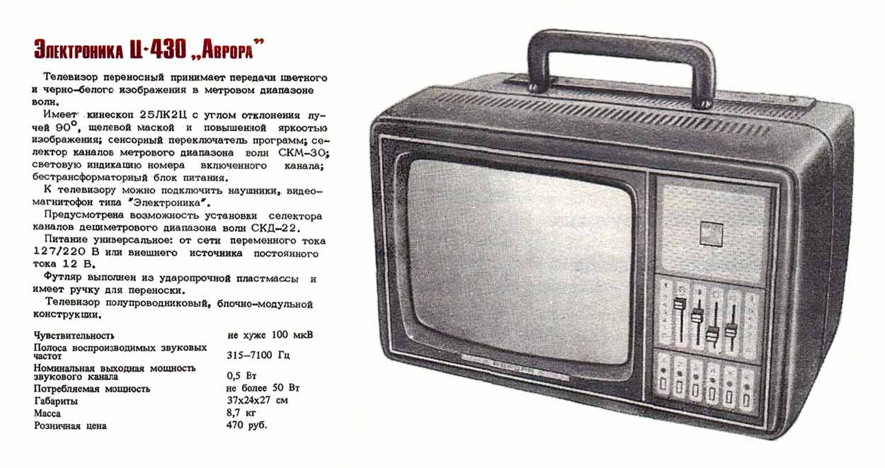 Электроника Ц-432 "Аврора". Телевизор предназначен для приёма программ