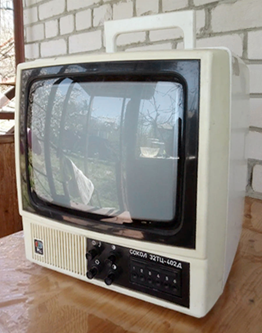 с размером диагонали 32 см и углом отклонения электронного луча 90°. Телевизор