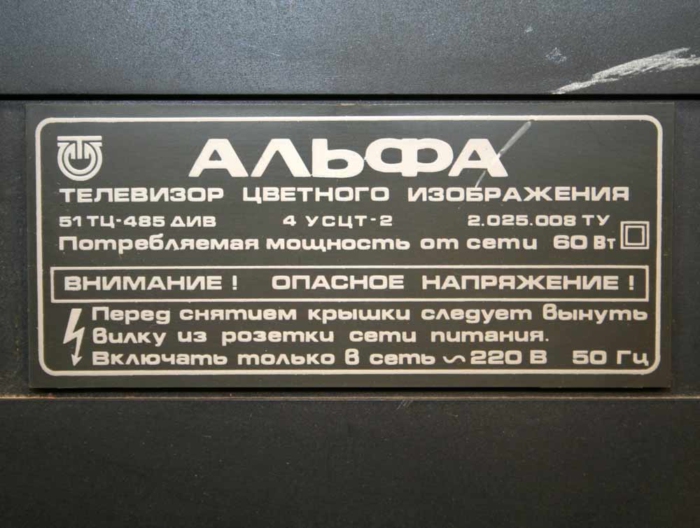 приёмник цветного изображения "Альфа 51ТЦ-485ДИВ" с I-кв 1990 года выпускал