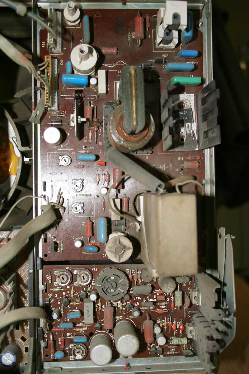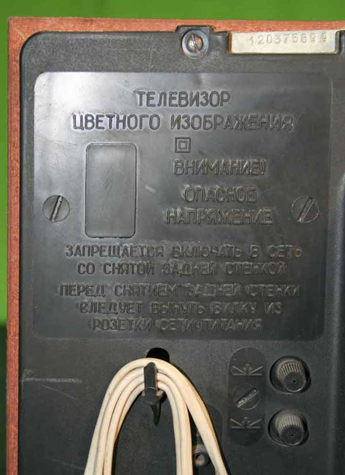 мощность ~80 Вт. Габариты телевизора ''Берёзка 51ТЦ-311Д'' - 496 х 751