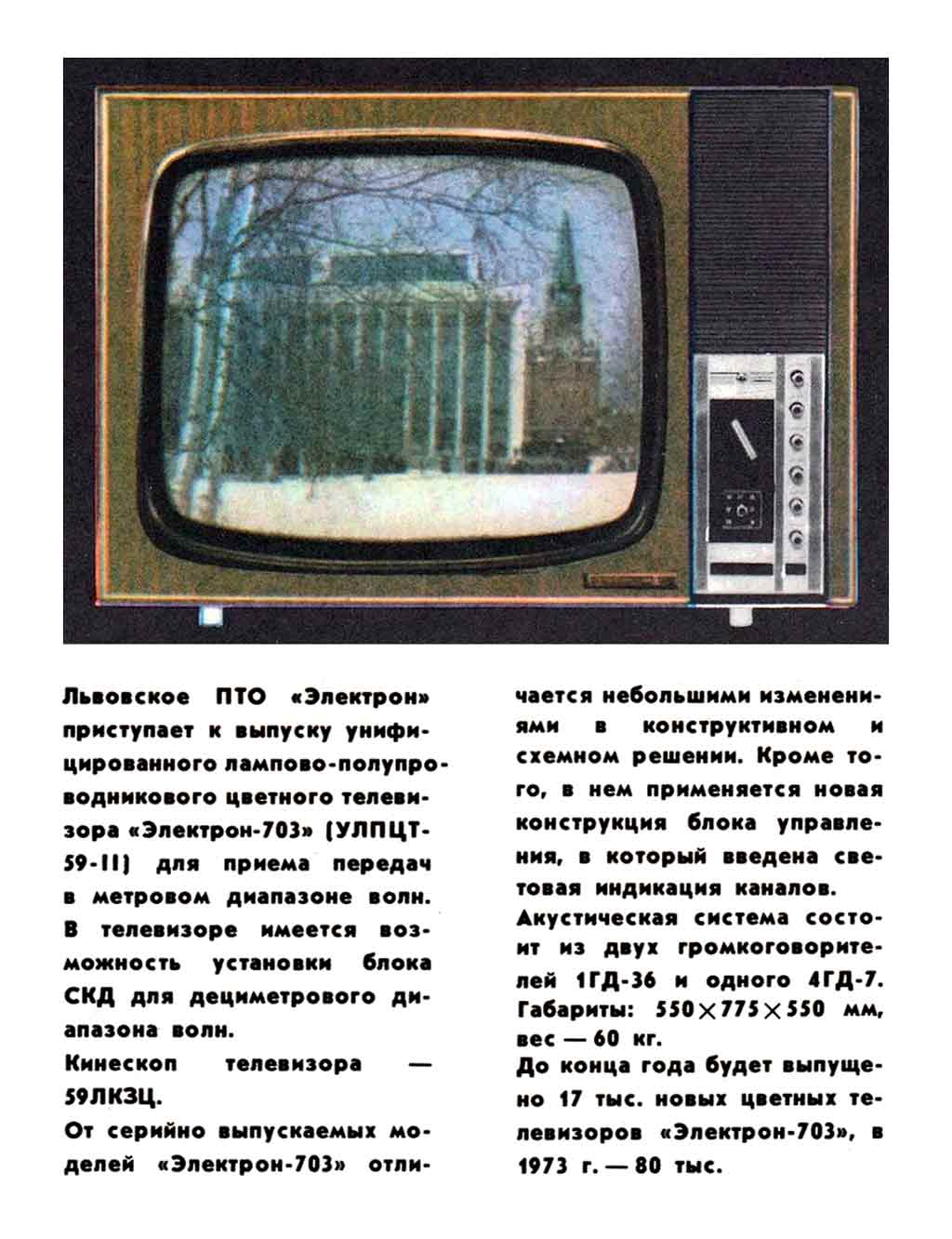 "Электрон-703/Д" (тип УЛПЦТ-59-II-1) с 1972 года опытно выпускал Львовский