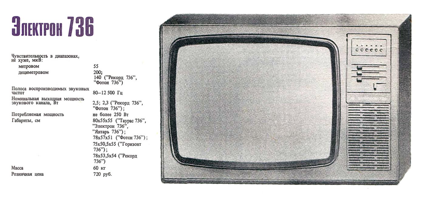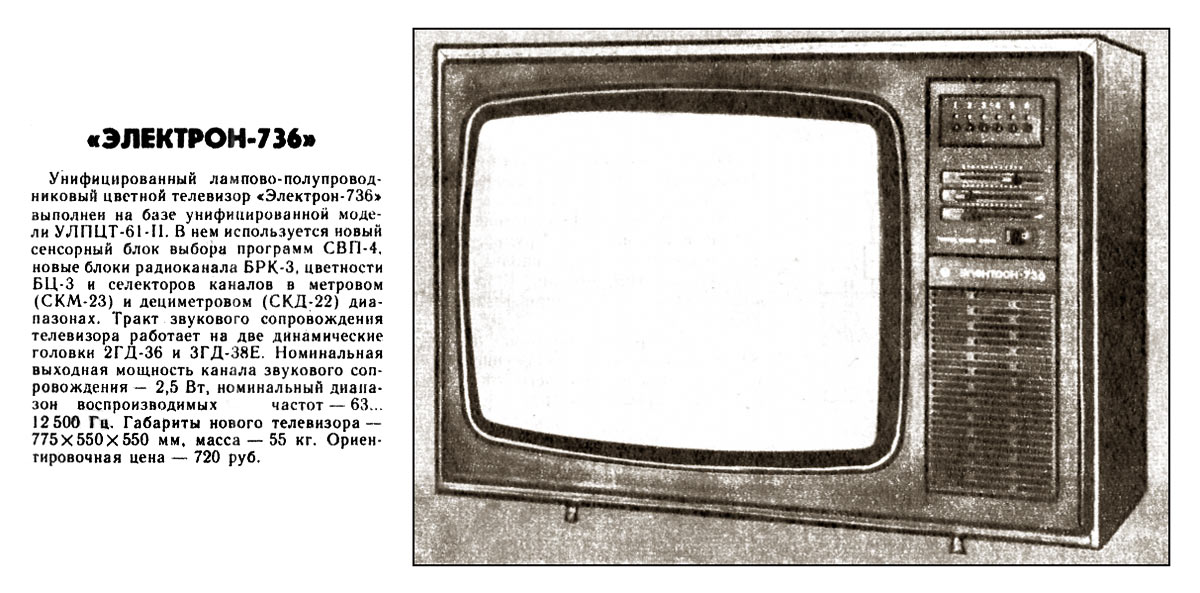 телевизор второго класса "Электрон-736Д" (УЛПЦТ-61-II-30) с 1980 года выпускал