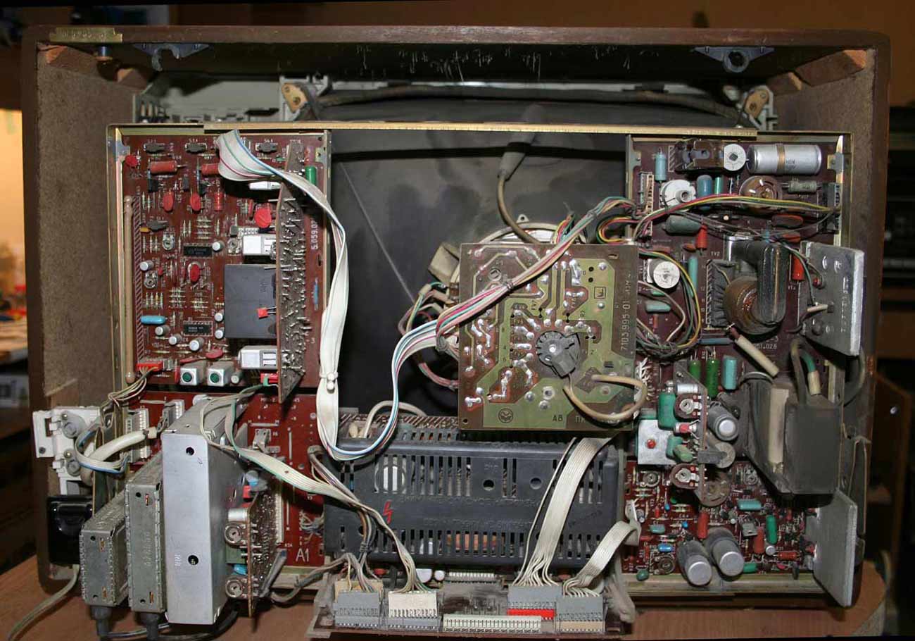 Телевизор выполнен на п/п приборах и микросхемах. Он рассчитан для приёма