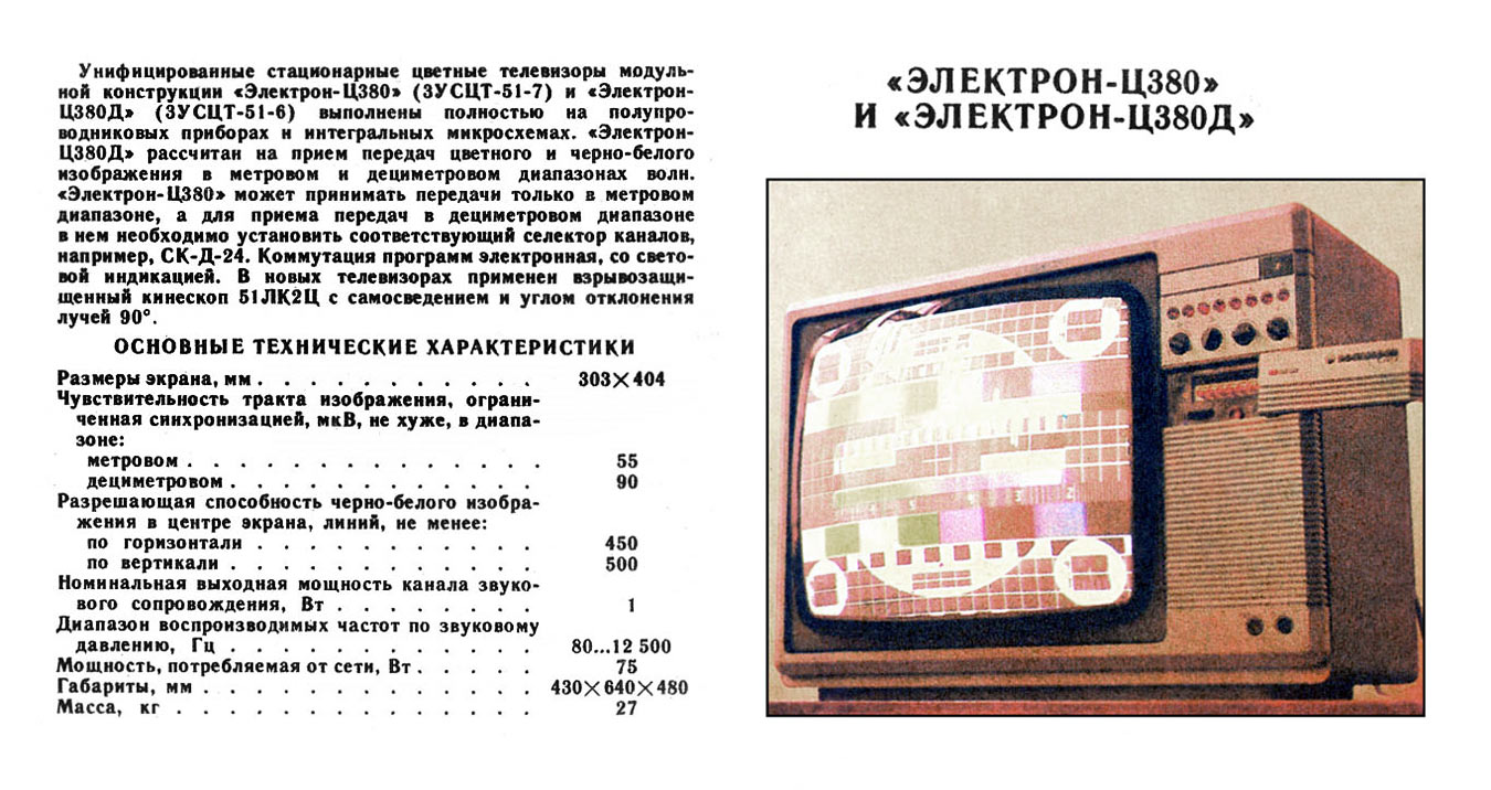 цветного изображения "Электрон Ц-380/Д" с 1984 года выпускало Львовское