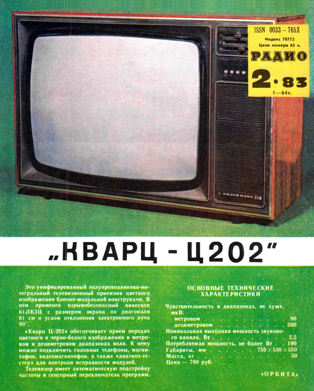 "Кварц Ц-202" с 1982 года выпускал Омский телевизионный завод. Цветной