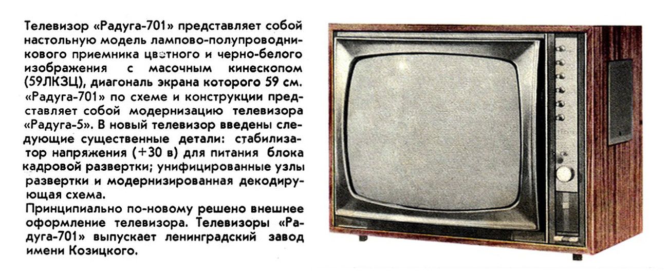 цветной телевизор "Радуга-701/Д" (ЛПЦТ-59) с 1970 года опытно выпускал