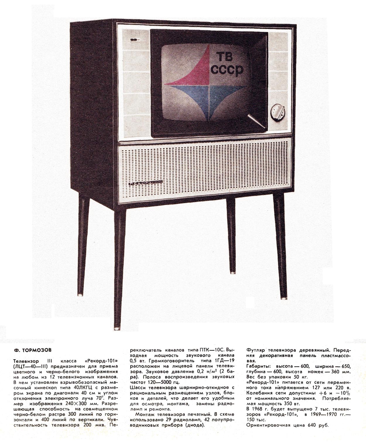 приёмник цветного изображения "Рекорд-101" с 1968 года малой серией начал