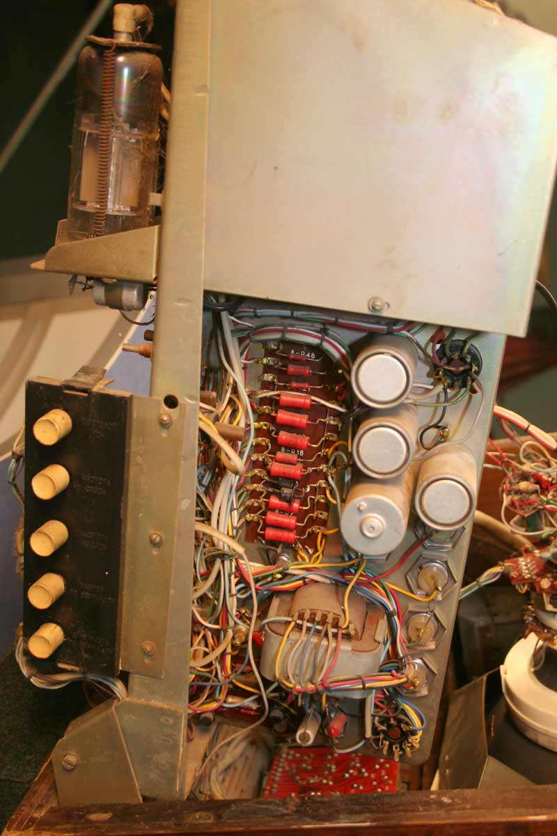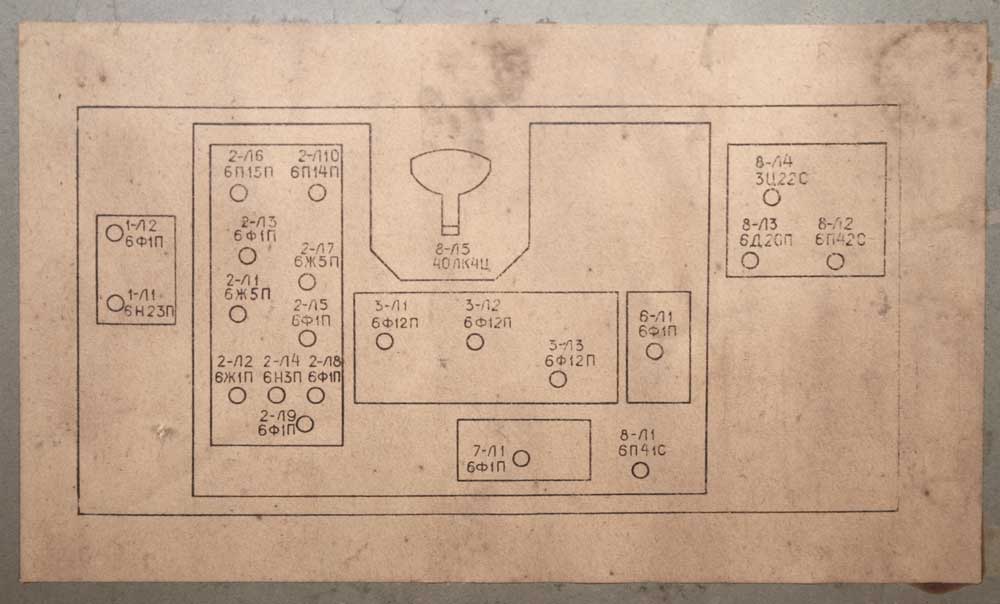 лучей 70 градусов. Телевизор собран на 29 радиолампах без применения транзисторов.