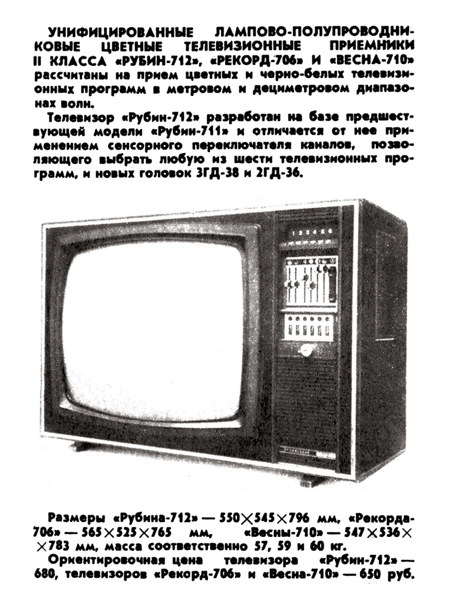 телевизор цветного изображения "Рубин-712" разработан и выпущен небольшой