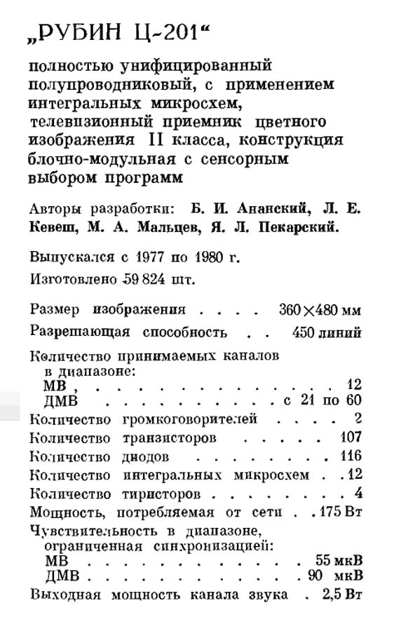 о телевизоре "Рубин Ц-201" Фотографии телевизора