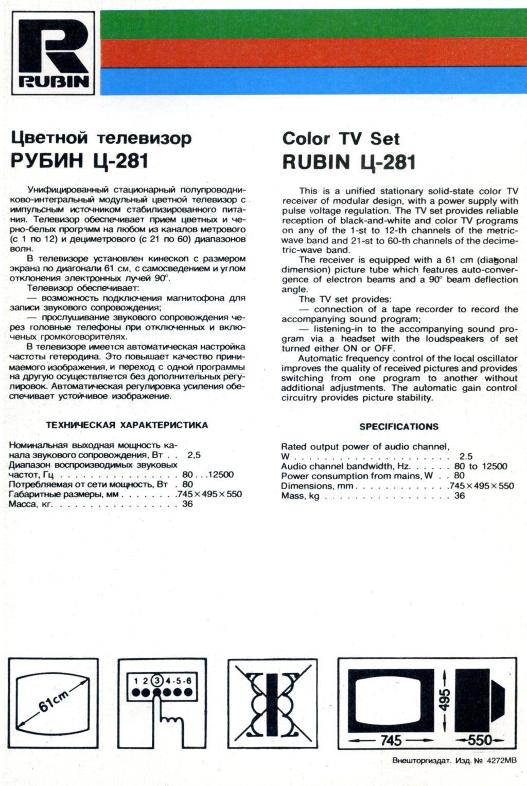 полупроводниково-интегральный цветной телевизор "Рубин Ц-281/Д" ('3УСЦТ-61)