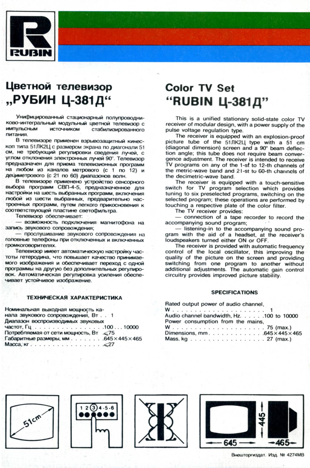 приёмник цветного изображения "Рубин Ц-381/Д" с начала 1985 года выпускало