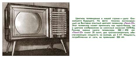 приёмник цветного изображения "Темп-22" опытно выпускали в 1959 года. С