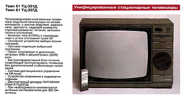 Цветные телевизоры "Темп 61ТЦ-331" и "Темп 61ТЦ-337" подготовило к выпуску с 1988 года Московское производственное объединение "Темп".