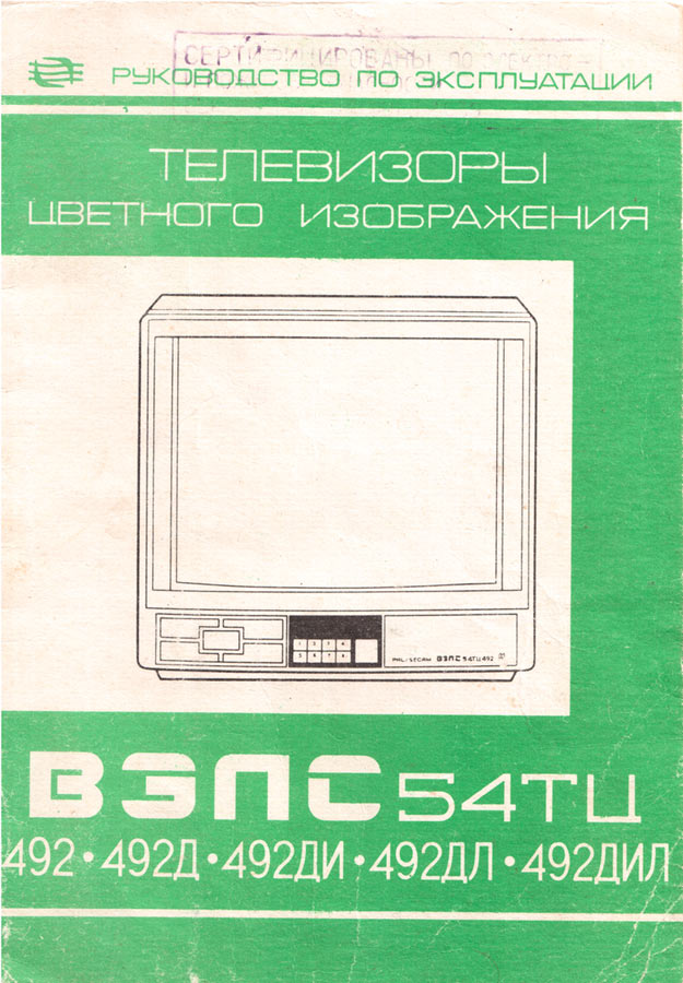 Телевизор цветного изображения "ВЭЛС 54ТЦ-492" выпускался предположительно с 1993 года Воронежским ПО "Электросигнал". Описание в инструкции.