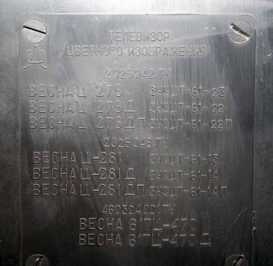 цветного изображения "Весна Ц-276/Д" с 1986 года выпускал Днепропетровский