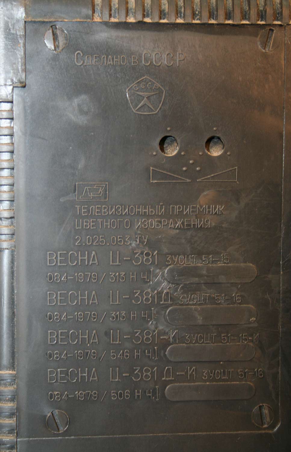приёмник цветного изображения "Весна Ц-381/Д" с I-кв 1985 года выпускало