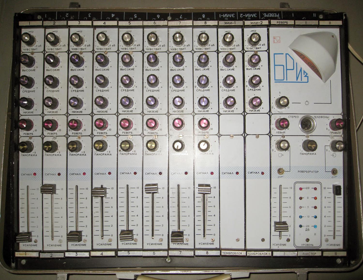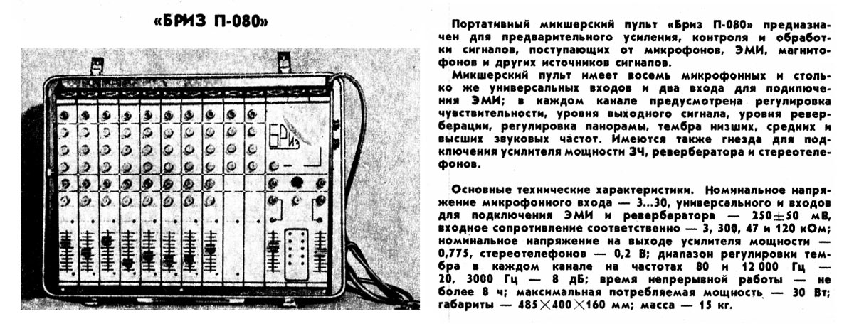 микшерский пульт "Бриз П-080" выпускался с 1986 года. Пульт предназначен