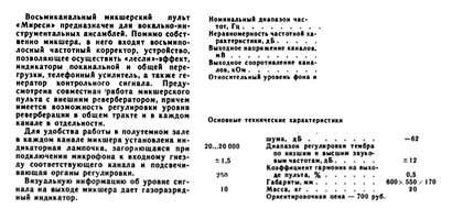 микшерский пульт "Миреси" подготовлен к выпуску с 1982 года. Он предназначен