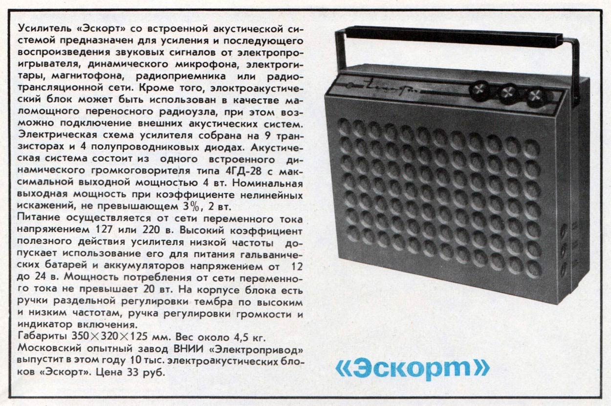 ''Эскорт'' предназначен для усиления сигналов низкой частоты с микрофона,
