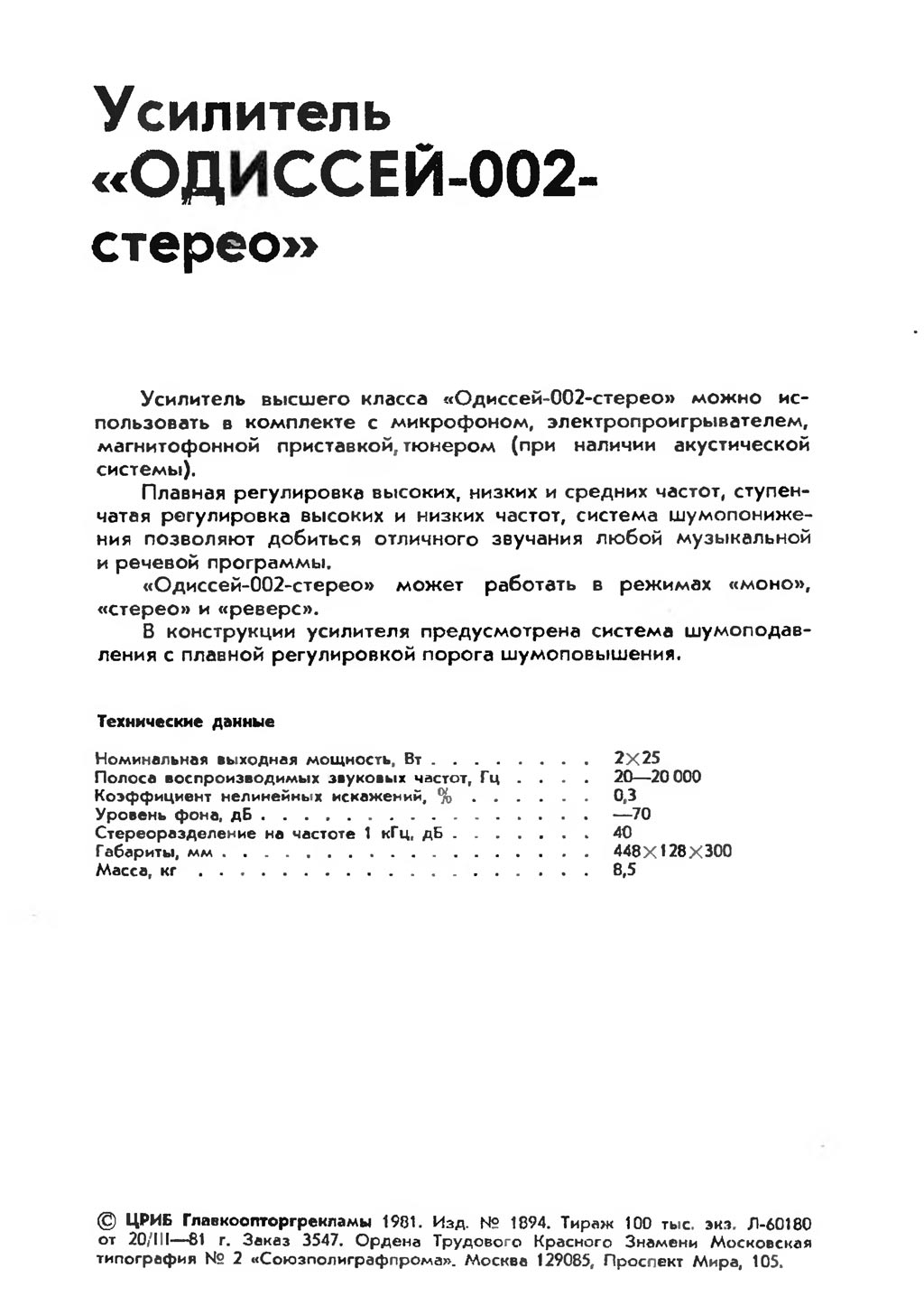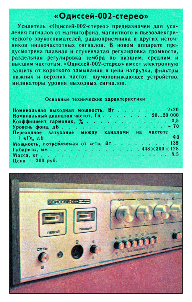 звуковой частоты "Одиссей-002-стерео" с 1980 года выпускал Киевский завод