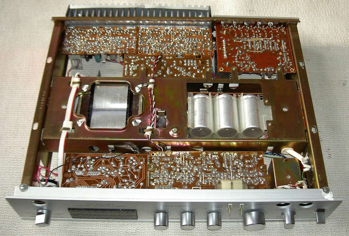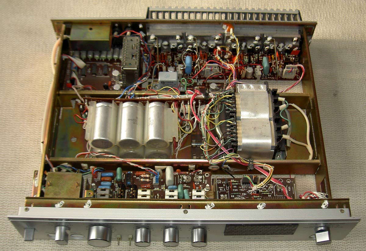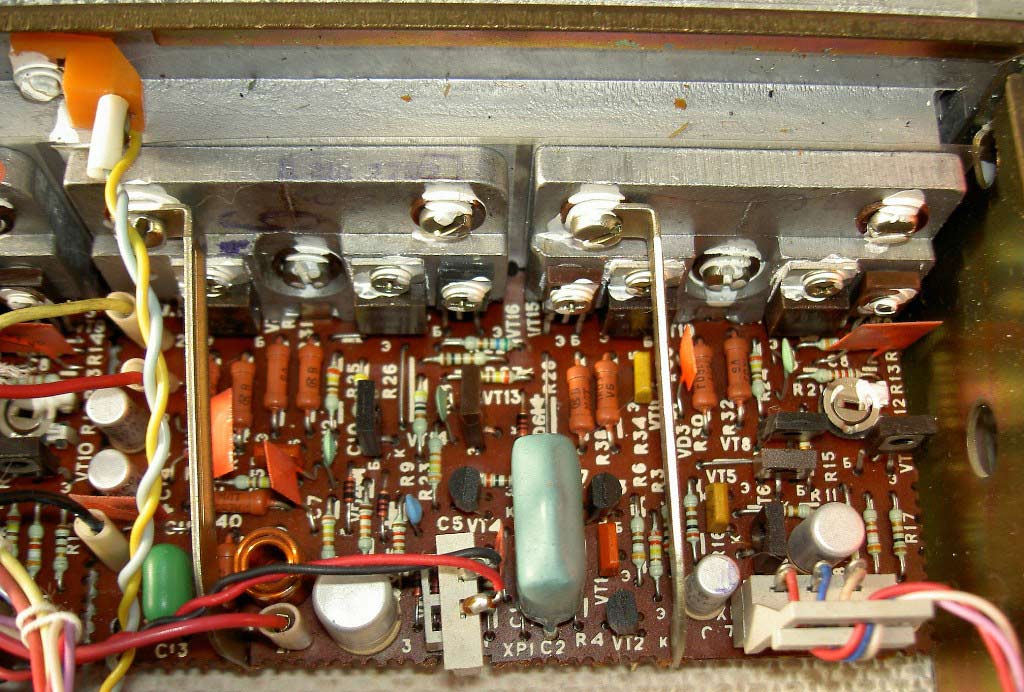 электронный коммутатор входов, электронные индикаторы выходной мощности,