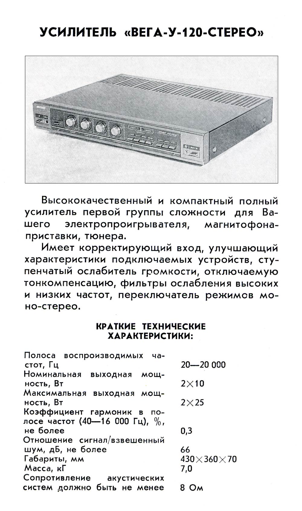 10У-120-стерео'' - полный усилитель первой группы сложности. Усилитель