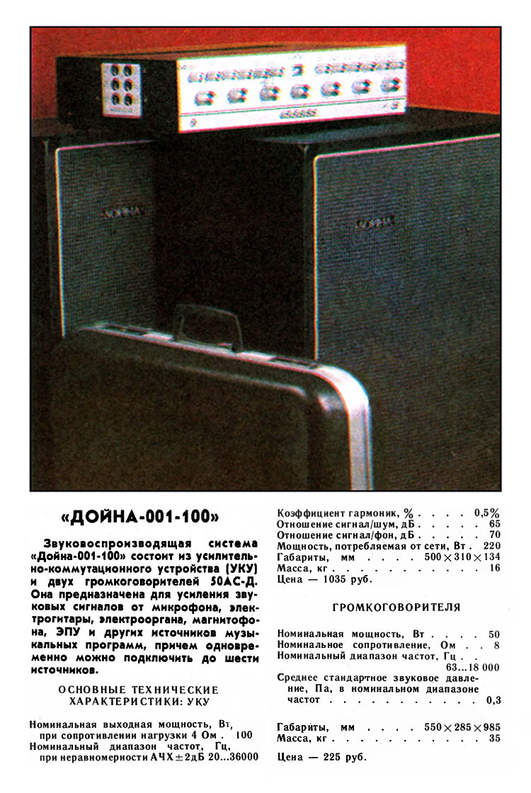 систему "Дойна-001-100", состоящую из УКУ и 2-х АС ''50АС-Д'', имеющую