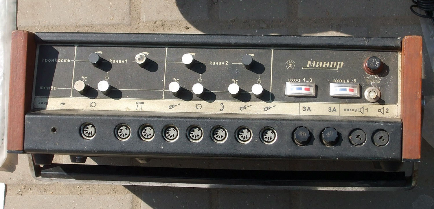 Двухканальный эстрадный усилитель "Минор" выпускался возможно с 1980 года Сарапульским заводом им/ Орджоникидзе. Информации нет.