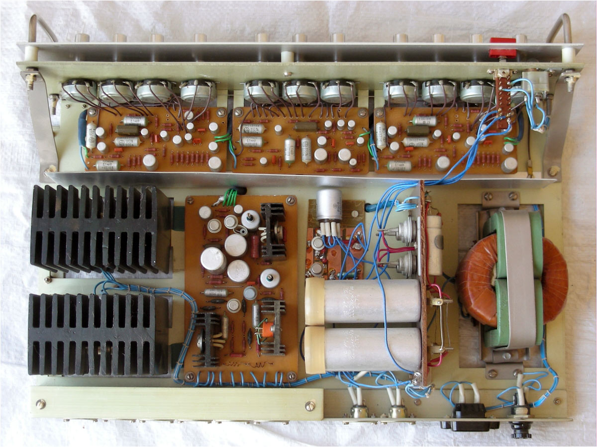 Усилитель имеет 3 канала предварительного усиления и общий усилитель мощности.